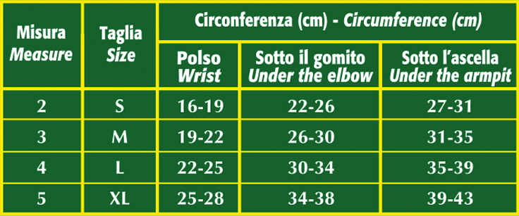Bracciale poliestensivo ortopedico ccl.2 con trama circolare, aderisce perfettamente al braccio assicurando una compressione decrescente dalla mano sino alla spalla.