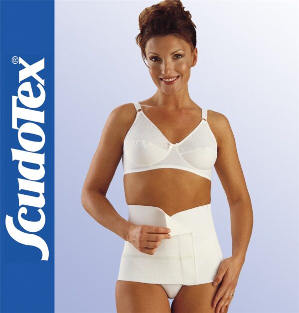 Cinture elastiche formate dall’unione mediante cucitura di 4 strisce di speciale tessuto elasticizzato anatomicamente sagomato, dotate di ampio pannello adesivo regolabile foderato in puro cotone che le rende particolarmente indicate quali ausilio post parto e post operatorio.