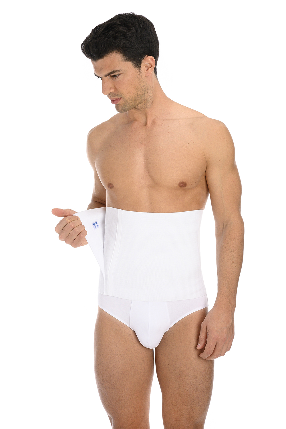 Cinture elastiche dotate di ampio pannello adesivo regolabile foderato in puro cotone, realizzate con uno speciale tessuto ad elasticità differenziata, con maggiore forza nella parte centrale, che ne accresce l’azione contenitiva assicurando perfetta aderenza e vestibilità.