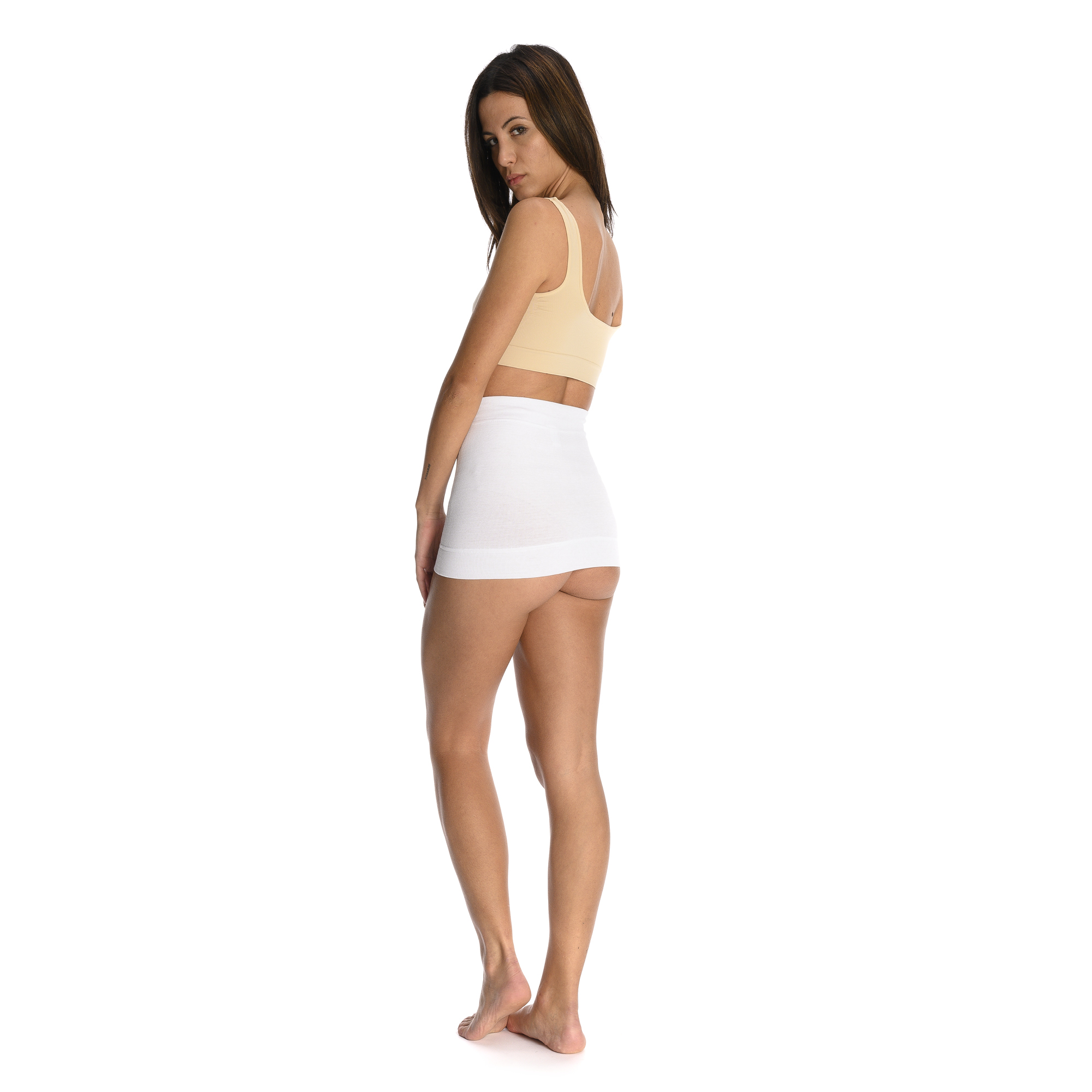 Cintura tubolare, in fresco e igienico cotone elasticizzato, per una perfetta aderenza e vestibilità.