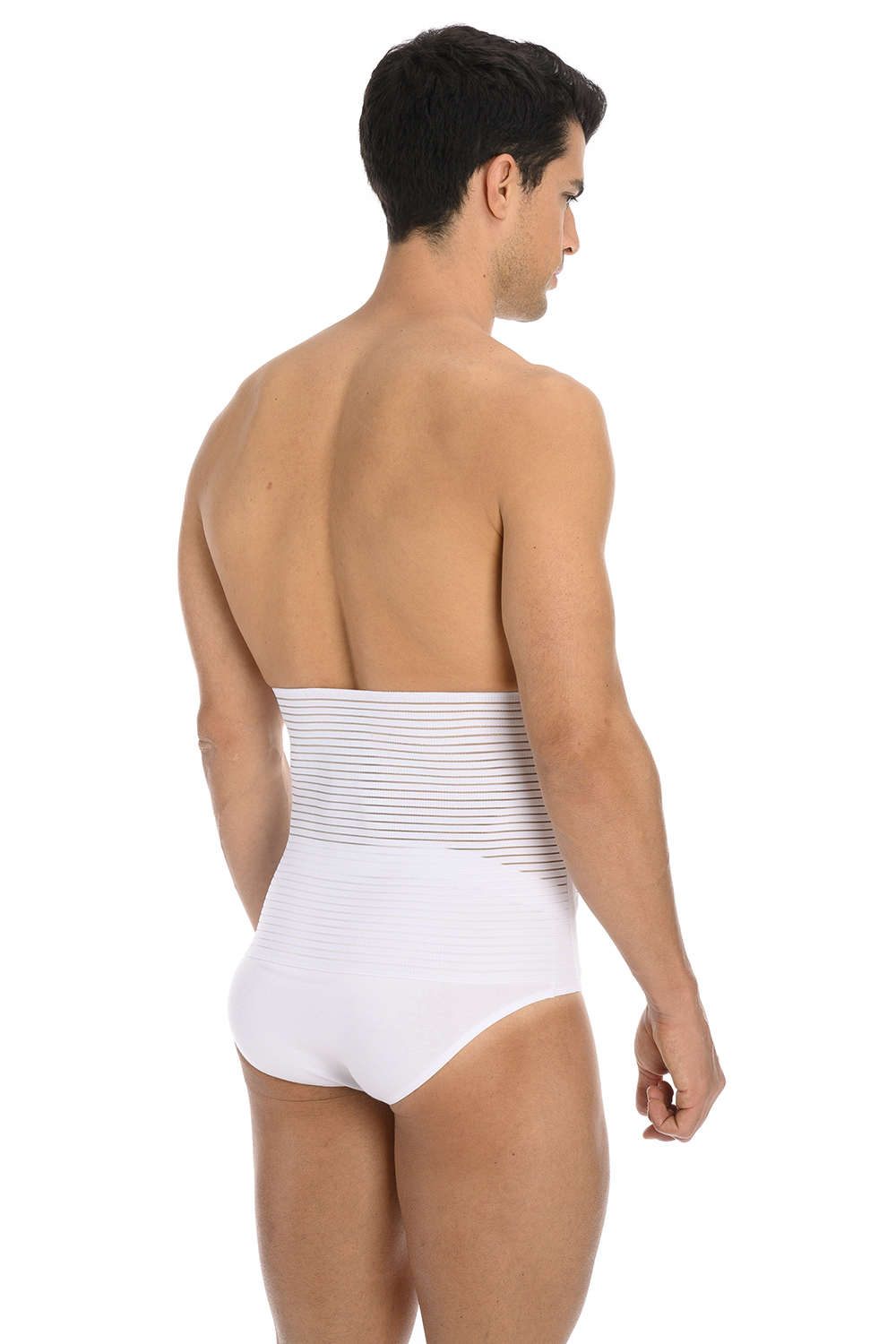 Cinture elastiche in speciale tessuto traspirante millerighe, perfettamente modellanti, aderenti, con una doppia chiusura regolabile parzialmente sovrapposta che accresce il sostegno, facilitandone la indossabilità.