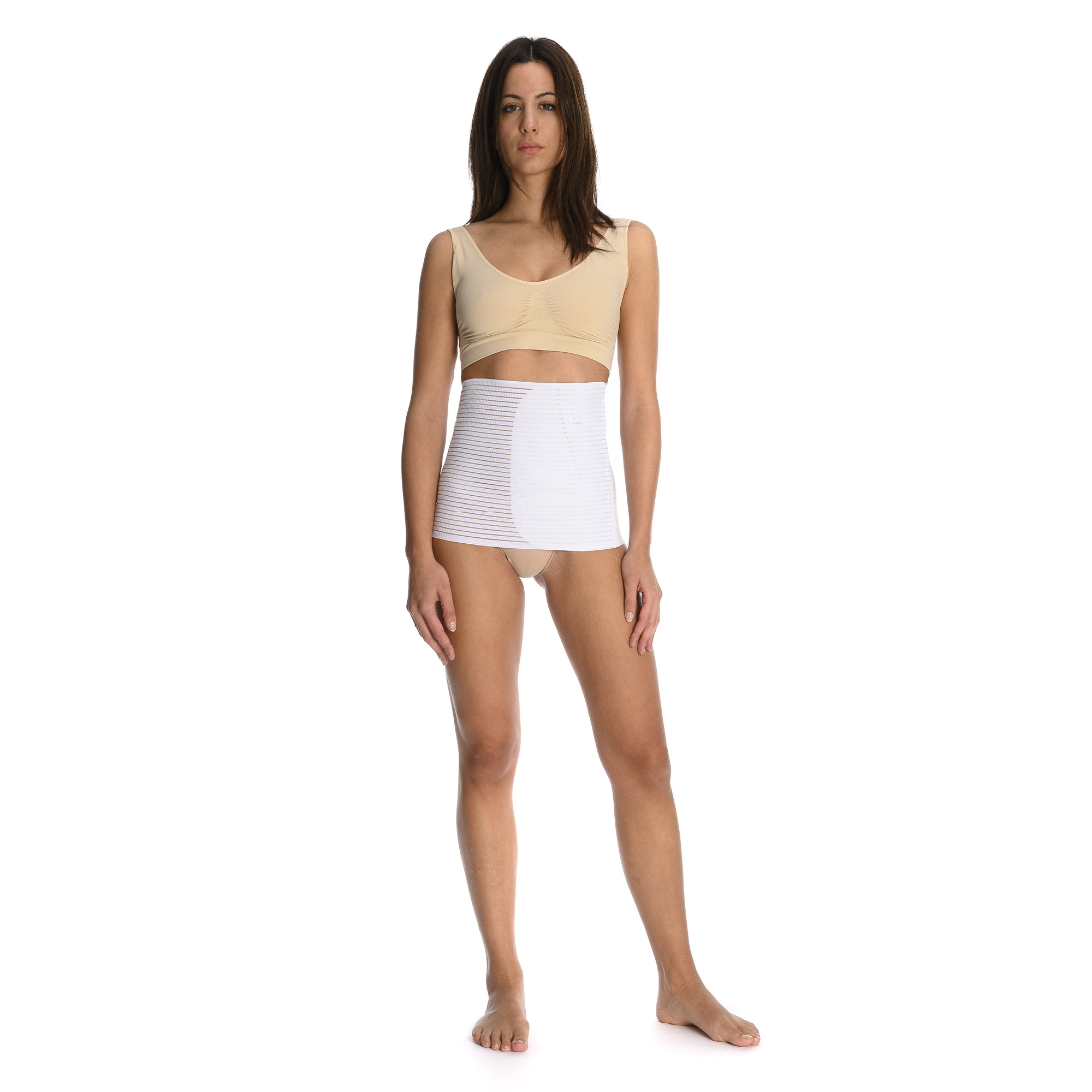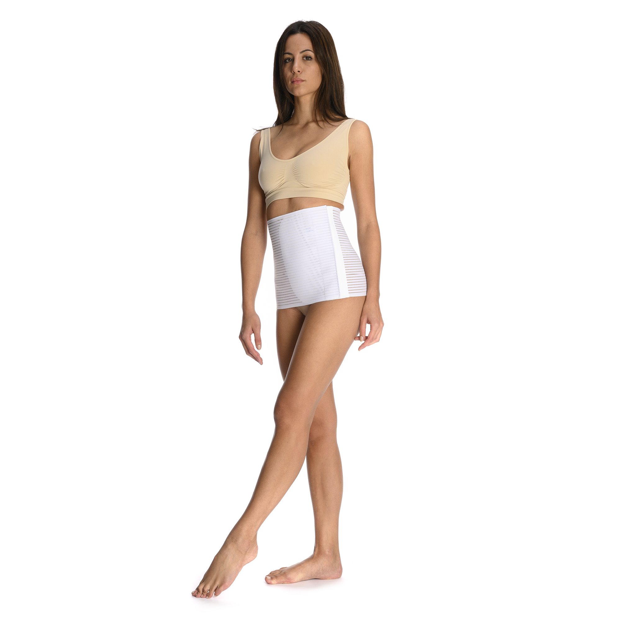 Cinture elastiche in speciale tessuto traspirante millerighe, perfettamente modellanti, aderenti, con ampio pannello foderato in puro cotone, adesivo e regolabile, assicurano una perfetta vestibilità e libertà di movimento.