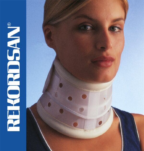 Costituito da due segmenti in materiale plastico flessibile anatomicamente sagomati, tra loro sovrapponibili in modo da poter adeguare l’altezza del collare alle esigenze dell’ utilizzatore.