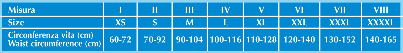 Corsetto in esclusivo igienico tessuto traspirante elasticizzato, rinforzato con incrocio dorsale sostenitivo e doppia fascia addominale che modella il corpo adattandosi perfettamente sia all’uomo che alla donna.