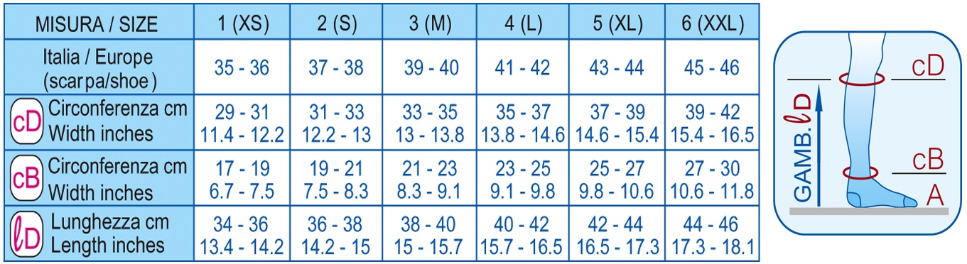 Gambaletto a compressione graduata con cotone e bordo invisibile.