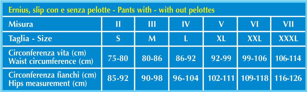 Slip contenitivo uomo ad elasticità differenziata, che garantisce un’efficace azione contenitiva e sostenitiva della parete addominale. Indicato per lo sport e nelle leggere forme d’ernia inguinale e nel decorso post operatorio.